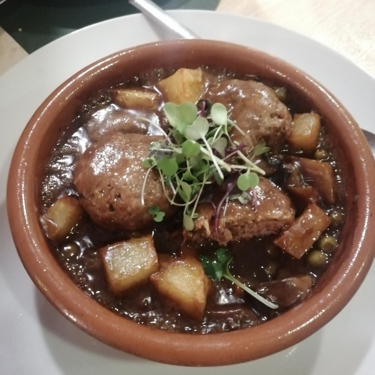 Buenísima!! La salsita estaba increíble y la "carne" muy muy rica. El conjunto era súper bueno, echaba de menos un poquito de pan para mojar 🤭
