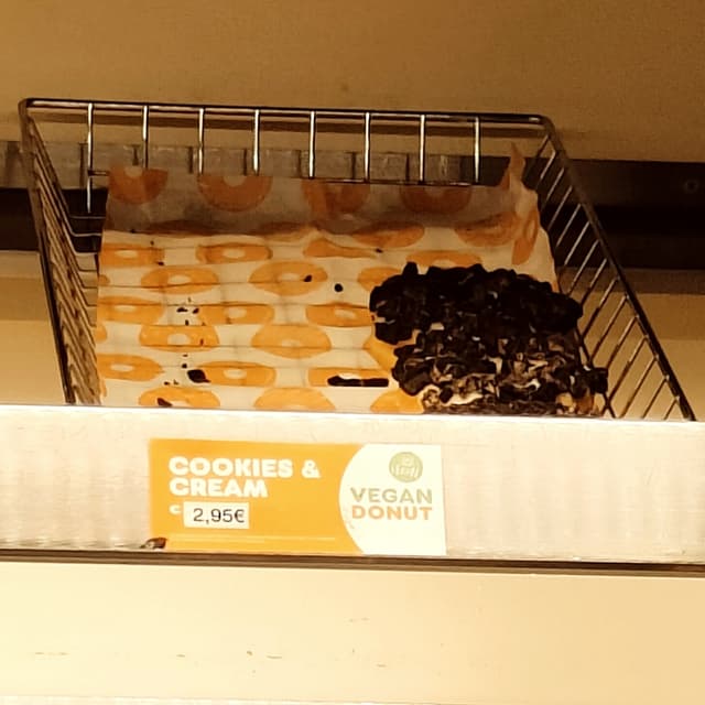 Un donut vegano de galletas estilo oreo y con cobertura de crema, aunque es más azúcar glass sólido. Me gustó muy bueno, pero demasiado azúcar.