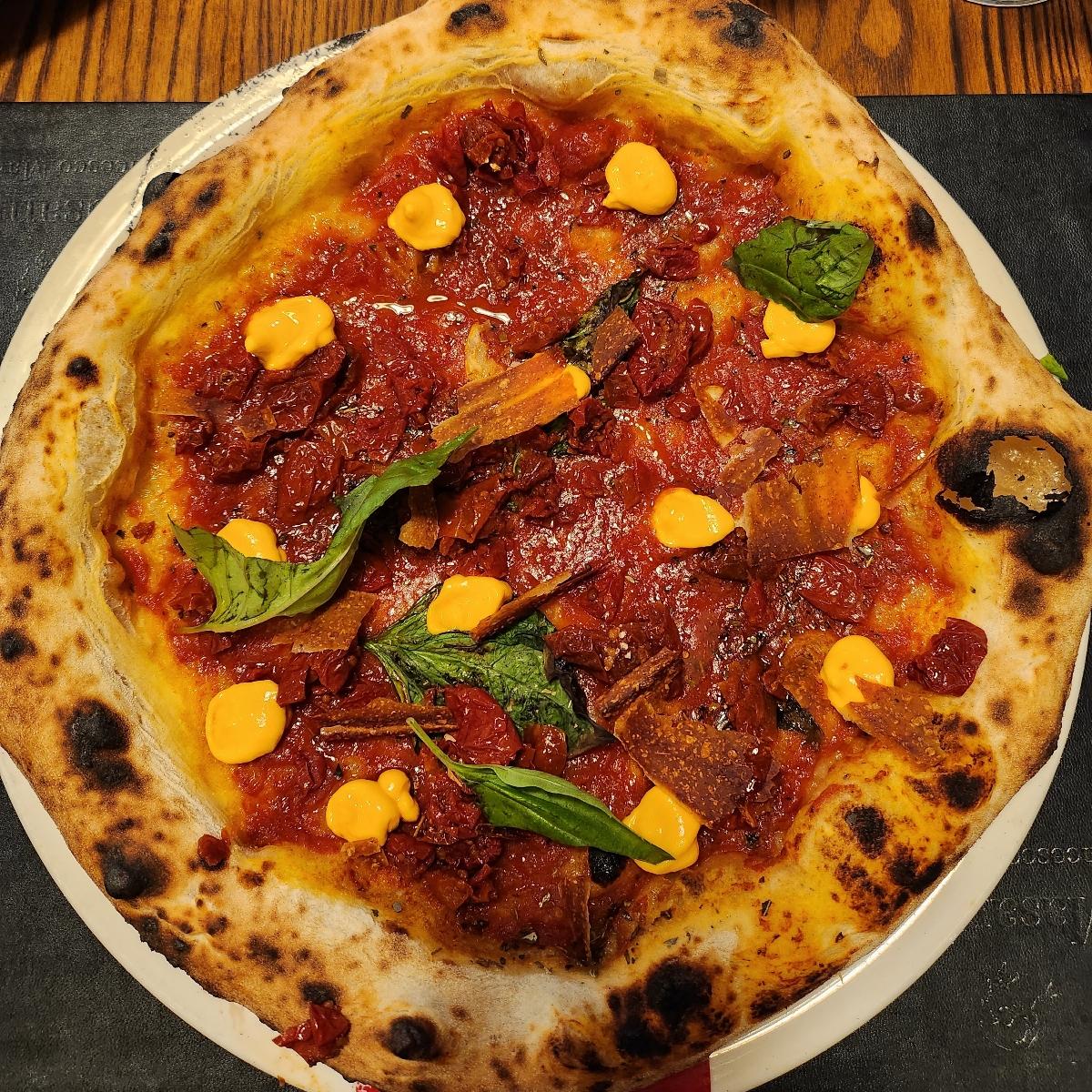 I finally tried the best pizza in the world here in Caserta, I choose the Marinara Atomica, Tomato San Marzano PDO cooked 12 hours; after cooking: dry piennolo tomato, crunchy tomato peel , tomato mayonnaise (no eggs) with soy milk, mountain oregano, Ufita garlic, EVO oil Itran’s Madonna dell'Olivo 🍕