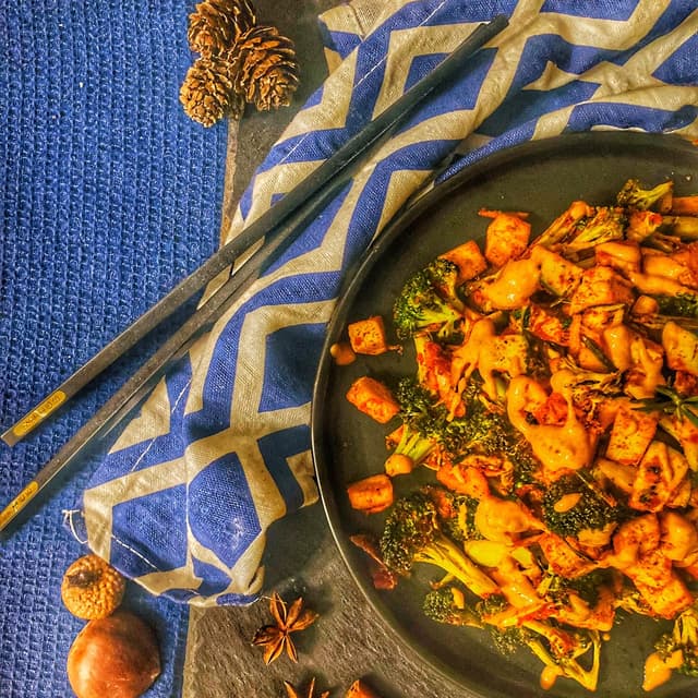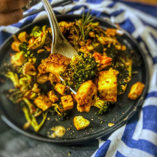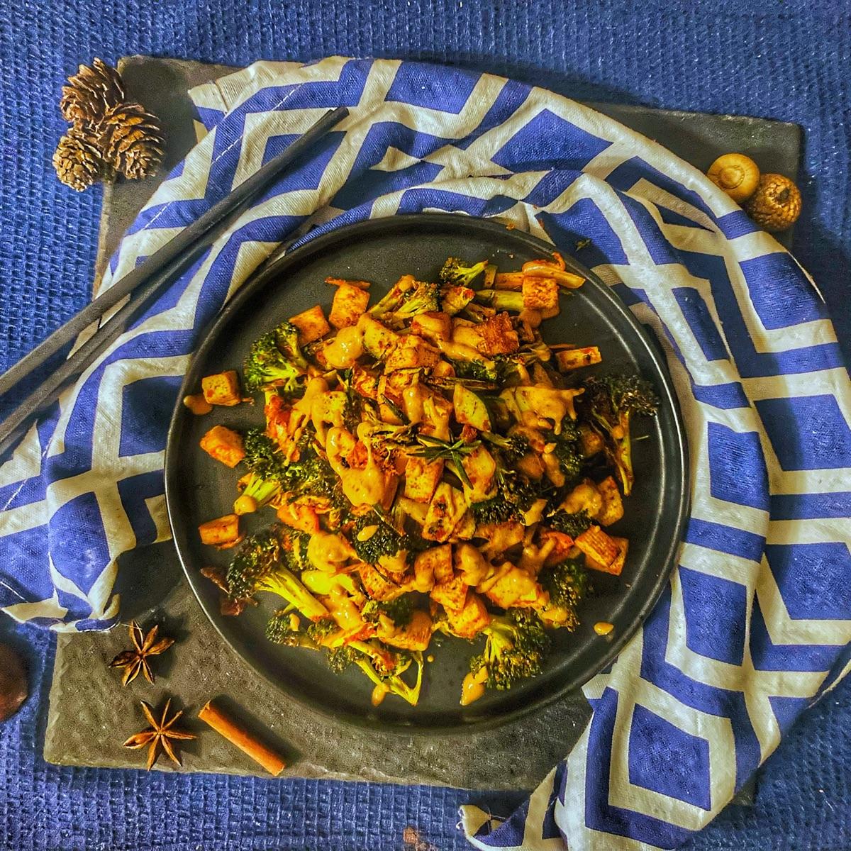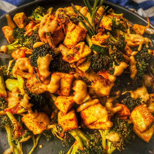 Supeeeeer Tofu bianco con verdure 🫑🥕🍅🥦🥦🫑🍅 al forno , salsa Tamari e burro di arachidi 🥜, davvero spaziale 🚀!!
