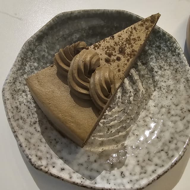 I have a massive backlog of reviews but when I recently heard that Hvala Craig is no longer fully vegan I had to post this. It was such a delightful blend of light sponge and bittersweet houjicha-infused cream in this generous slice of cake - so sad to hear this isn't available at what used to be the only all-vegan Hvala branch any more.