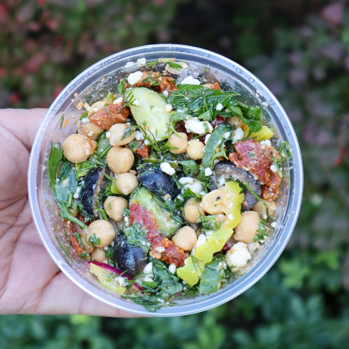 This is one of the very best things I've eaten recently. I cannot believe how many amazing flavors this had. This business is extremely healthy. Everything is #glutenfree #soyfree and they use no processed oils. This even had feta made from potato starch. 🥔 This had chickpeas, peppers, cucumber, onion, black olive, herbs like fresh dill and parsley.🌿 This was absolutely delicious and because it's very #healthy you still feel great after eating. This side dish was $8, which a bit expensive but all ingredients are high quality.