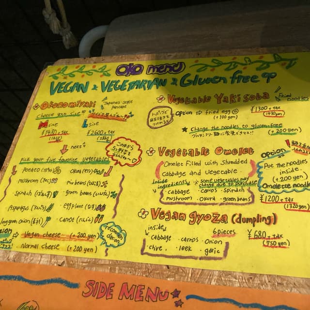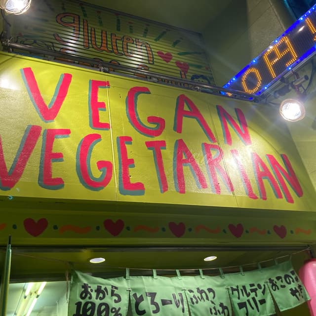 Dinner here was not a meal, it was a whole experience. Let me explain: this is an okonomiyaki restaurant, with a full vegan menu, and a great reputation that brought me here. The restaurant is on the different floors: you order on the ground floor, where the lovely owner takes your order and then prepares it, and in the meantime you can go upstairs and look for a table, then she calls you back through a PA system when the food is ready. The owner is truly lovely and has filled the place with colors and fun, and also many signs explaining her story: she used to have some staff, but it was more expensive and the waiting times were still the same, so she decided to continue the operation by herself, and she kindly asks the guests to clean after themselves when they leave, to facilitate her job. Moreover, while you queue to enter the restaurant and also when you’re sitting at the table you can go fill yourself a glass of beer for only ¥200, that’s incredibly cheap! I had a great night here, made some friends (that beer might have helped) and will forever carry this experience with me 🥰