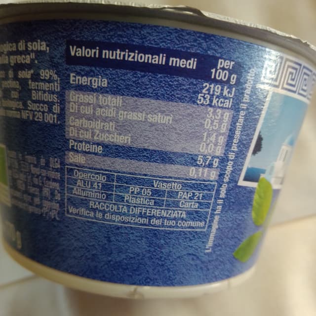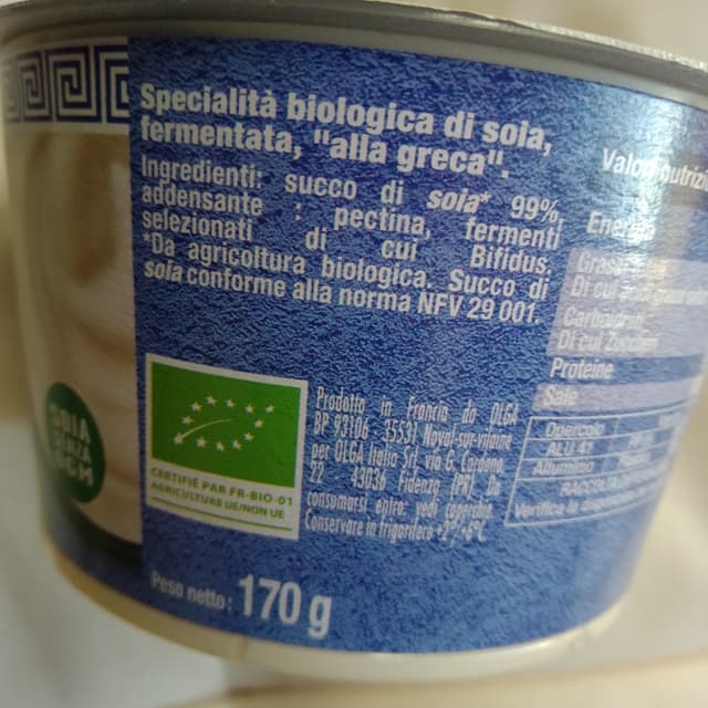 È un prodotto biologico di soia che io mangio di solito a merenda. Ha una consistenza più densa di un normale yogurt perché è alla greca.