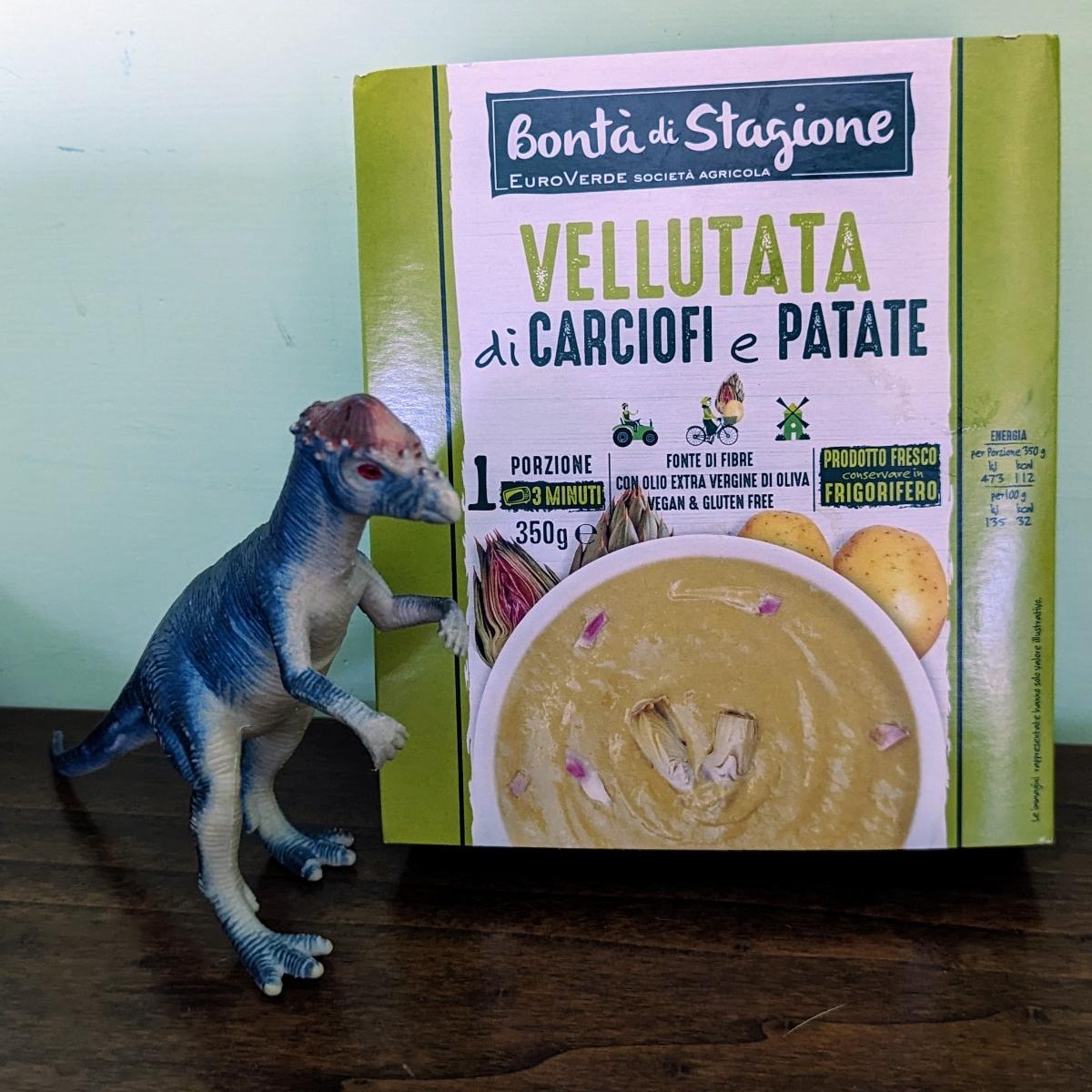 Con la gentile collaborazione del pachicefalosauro di mio nipote (che essendo erbivoro può apprezzare il genere), ecco una vellutata pronta da tenere in frigo in caso di pranzo o cena al volo. Comodo da portare al lavoro se si hanno a disposizione un frigo e un microonde.