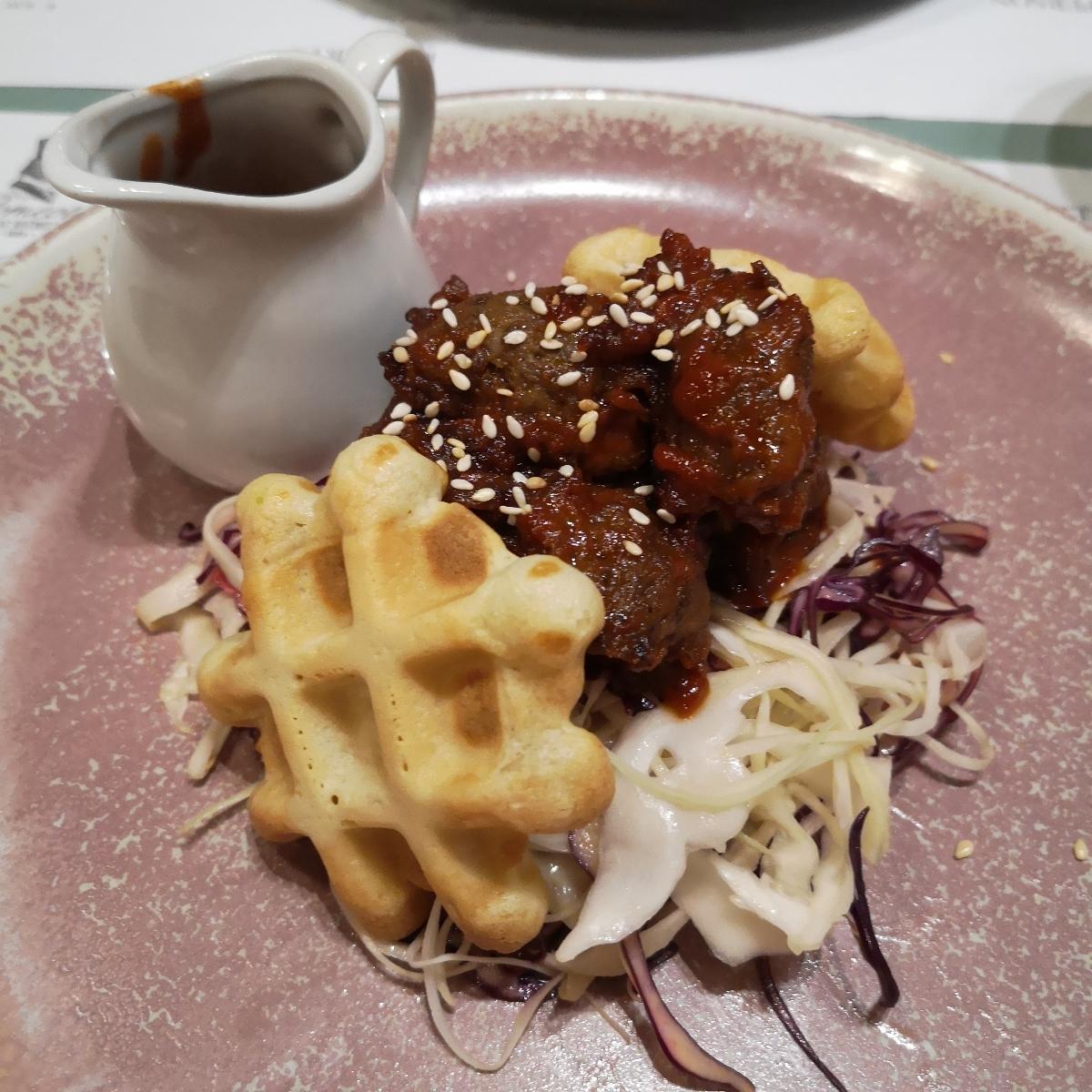 The dish was the cat's meow. It's true: seitan, waffles, coleslaw and savory sauce don't sound particularly complimentary. But trust me, Romeow's makes it delicious, classy, and adorable!