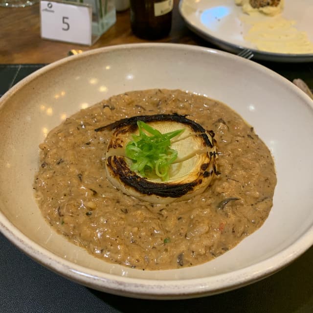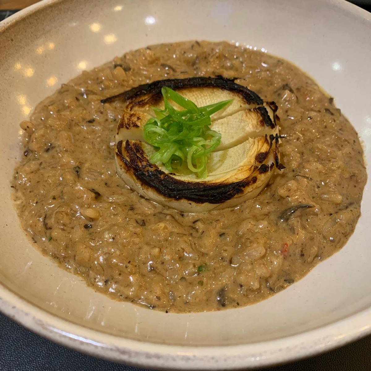 Que prato maravilhoso! Risoto de funghi com manteiga de ervas e alcachofra grelhada. Uma explosão de sabor e 100% vegano.