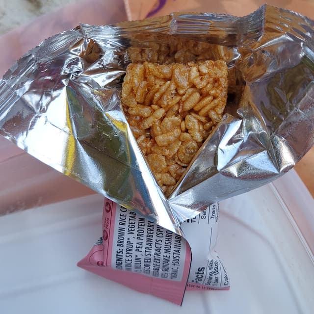 Brought this from the US and it is honestly tastier than I'd expected it to be! Nice flavor and crisp. It is a bit too small to be a decent snack, but maybe it does the trick if you're not hungry. #madegood #crispysquare #ricecrispysquare #strawberry #snack #vegansnacks #ricesnack #veganin2023