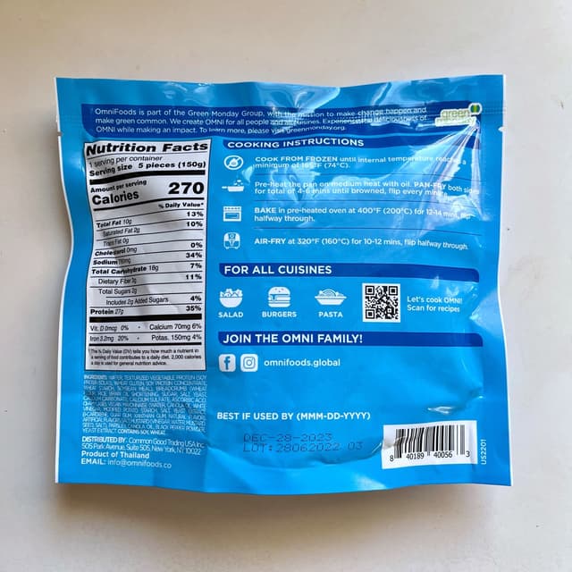 I was floored; I honestly could not believe how tasty these were! When prepared as directed (I don’t have an air fryer, but I tested pan-frying and toaster over, both excellent,) they develop a nice #crispy crust outside while remaining incredibly tender and flaky at the core. They have a mild marine flavor with hints of various spices, most notably pepper. I believe they do indeed taste like crab, but better. #fakemeat Nutrition-wise, they’re not half bad, either: they offer a commendable amount of #protein and, surprisingly, iron. Because they were so ridiculously delicious (and only $1.99 per bag at Grocery Outlet,) I ended up going back and buying every bag I could get my hands on!