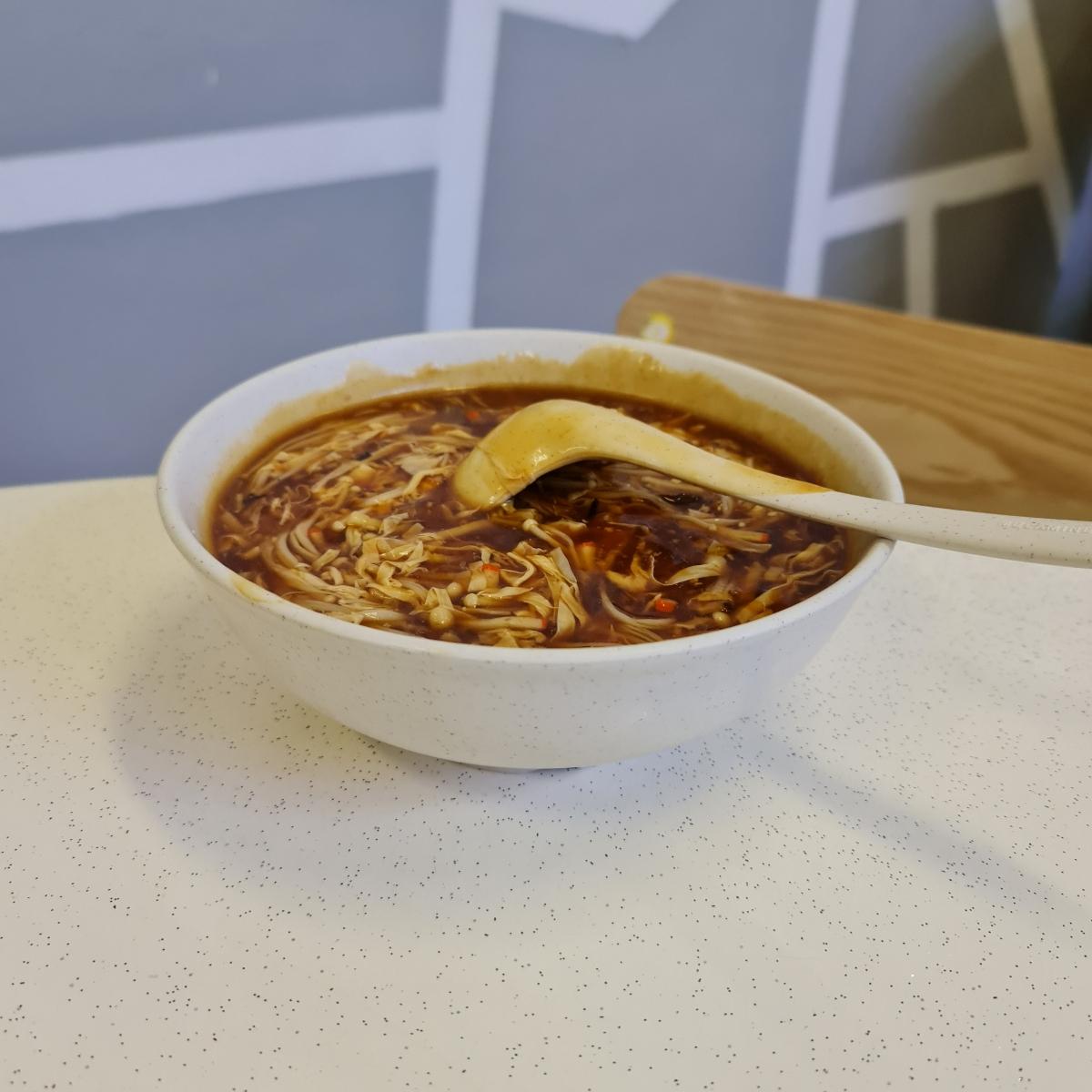 $12 for S portion of #sharksfinsoup minus the endangered #fish replaced by shreds of baiye #tofu for protein, #enoki for texture + bite and despite looking so dark and heavy tasting, this was surprisingly clean and comforting