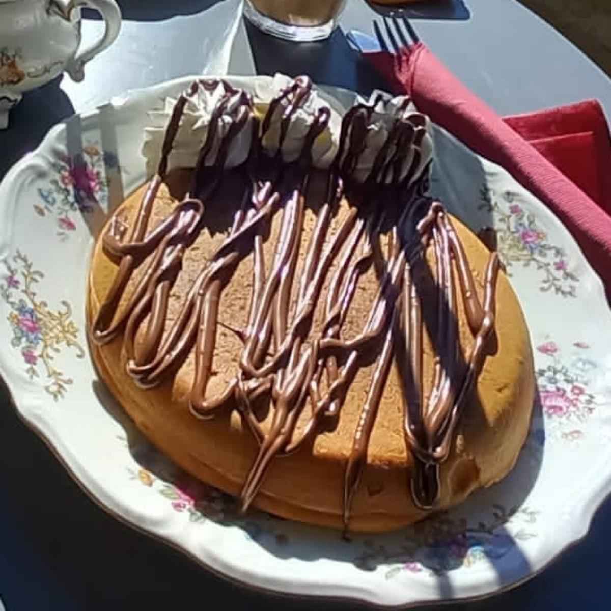 Pancake con cioccolato e panna, questa è la porzione piccola🙄🙄🤩🤩 buonissimo, soffice, super goloso, buonissima anche la panna!