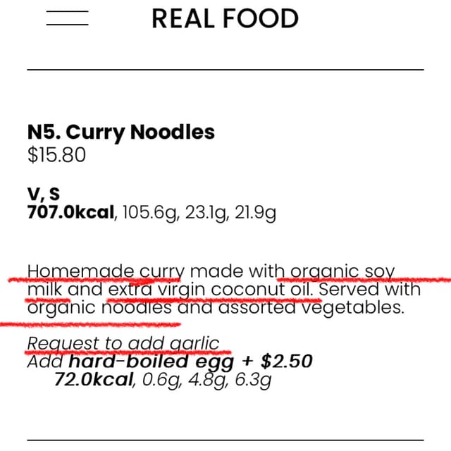 I love that the noodles are #organic & #sundried instead of deep fried. The curry is homemade at Real Food. The curry isn’t the type that is thick & creamy. It is very much watery, & I guess it is because of the organic soy milk used.