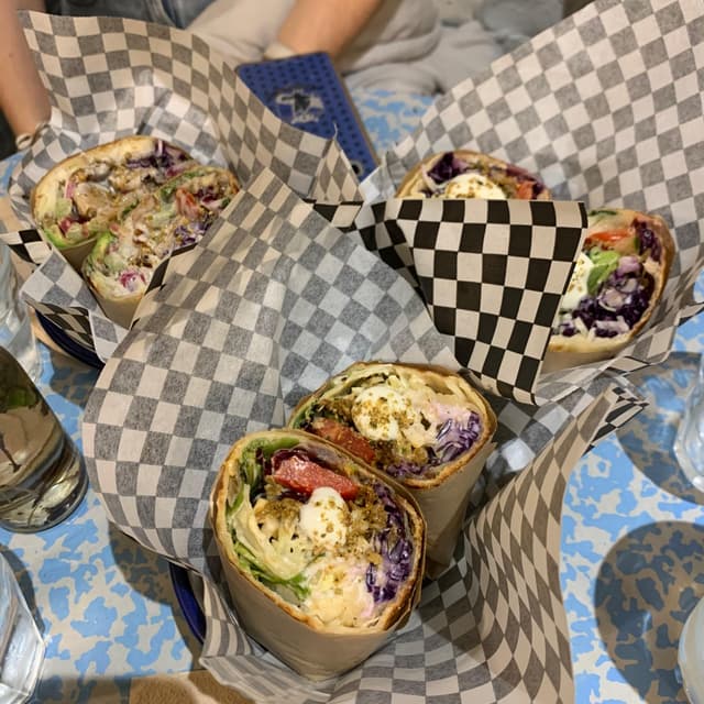 Mi hermana y mi amiga pidieron cada una un Seitán Doner Kebab y les encantó a las dos, salieron muy contentas! Llevaba seitán, col lombarda, hojas, tomate, pepinillo, olivas y vegan mayo.