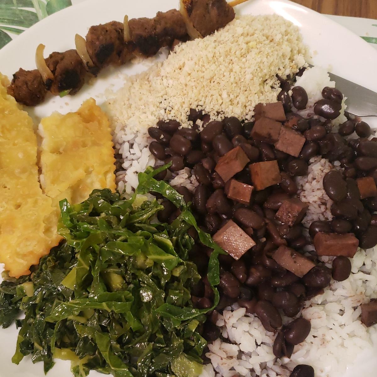 Já postei sobre o supervegetariano, mas é tão bom que merece outro post. O prato da vez foi feijão preto com tofu defumado, arroz, farofa, couve refogada, pastel de palmito e espetinho de soja. Como sempre estava tudo maravilhoso, de bônus coloquei a foto do meu prato de salada e o bolo de chocolate de sobremesa.