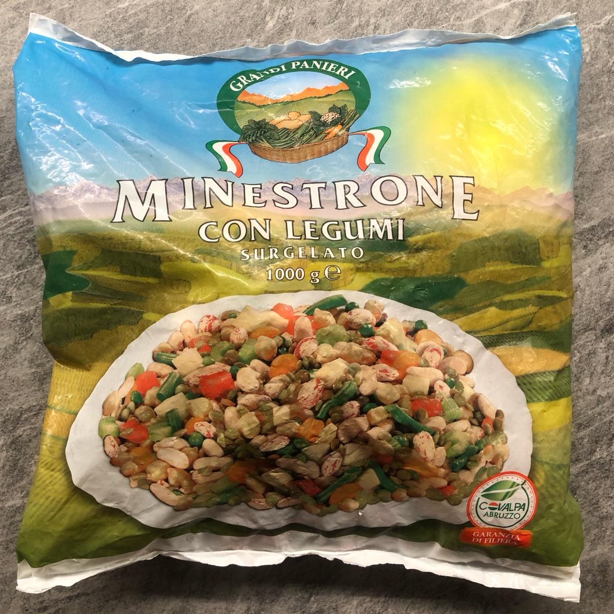 Minestrone di verdure e legumi. Buono il mix (non solo fonte di fibre e nutrienti tipici della verdura, ma anche di proteine), positivi anche il prezzo (che non ricordo nel dettaglio) e la quantità (1 kg).