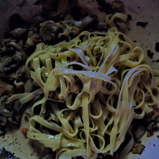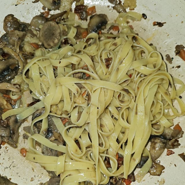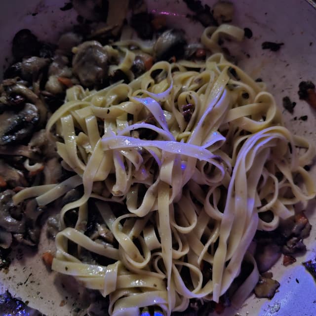 Buone le tagliatelle! Non sono il mio formato di pasta preferito ma le metto sul podio. Hanno risolto la pochezza dei funghi... 🙃😇😅