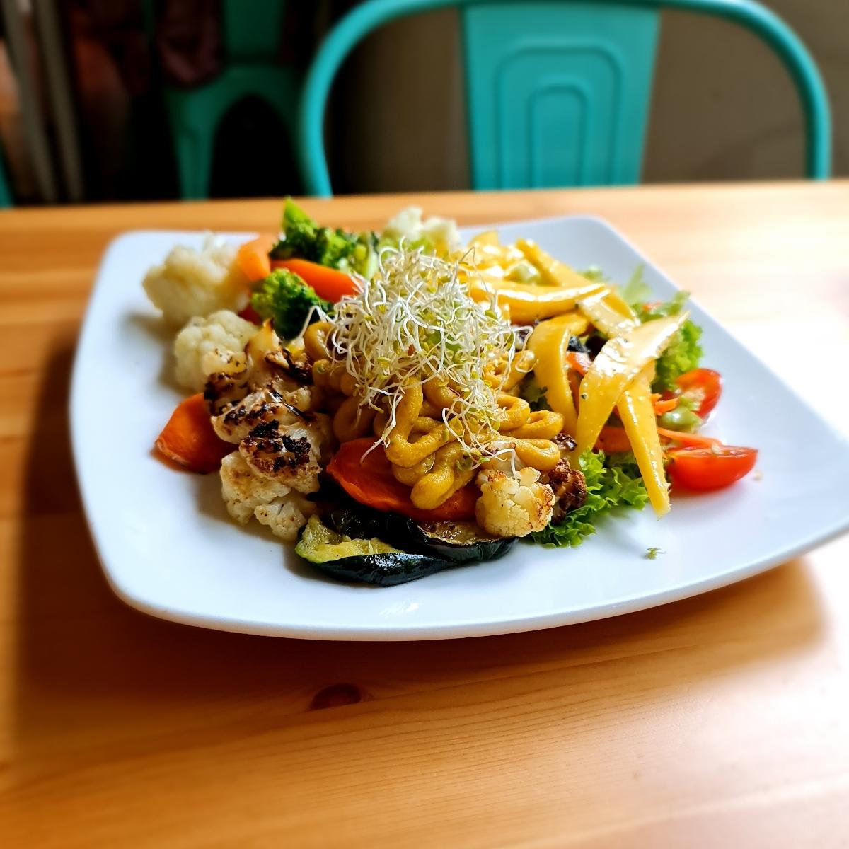 This was a full plate priced at RM23 with #alfalfa, #cruciferous, #mango slices, #rabbitfood, roasted #carrots + #zucchini and of course, the characteristic #pumpkin #hummus. Sweet and quite frankly, just mashed #fruit (and moisturizer?) squeezed out of a tube to look the part. Can't recall the dressing on this (if there's one); so much going on in one dish. All in all refreshing and fibre filling. I feel #healthy healthier already just lookin at it