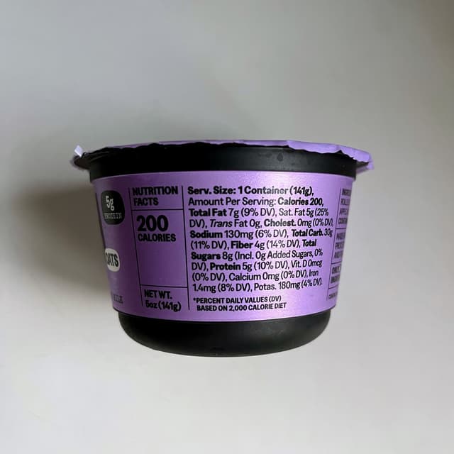 If you’re a #berrylover, you may be a bit dismayed: the #blueberry flavor wasn’t especially strong, but there were clearly purplish flecks present throughout, suggesting the use of real fruit. I wish the #oats had been slightly more fruity and tart. All in all, it’s a convenient option for busy/#lazyvegan days, but the more economical and environmentally sound alternative is to take matters into your own hands (and fridge.)
