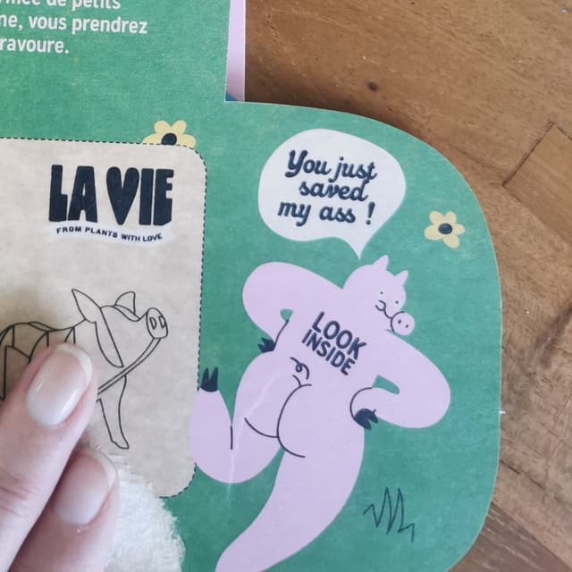 En plus d'être parfaitement délicieux sans conservateur sans OGM, peu salé etc ...et de plaire à tous les #nonvegan à qui je l'ai fait goûter le paquet est un petit chef d'oeuvre d'humour et de bonne humeur.
