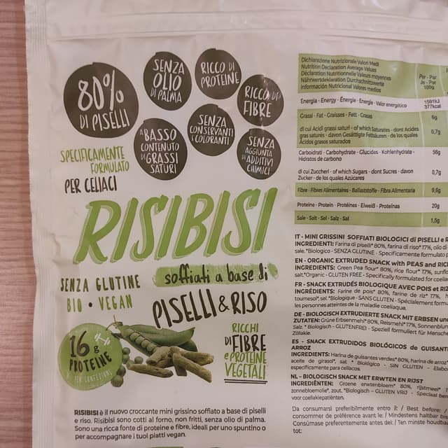 Li ho assaggiati e mi sono piaciuti molto! Sono dei piccoli grissini di riso soffiato con proteine dei piselli (infatti sono verdini 🥺🥺🥺), li trovo un'ottimo snack e sono perfetti da servire ad un aperitivo home made!