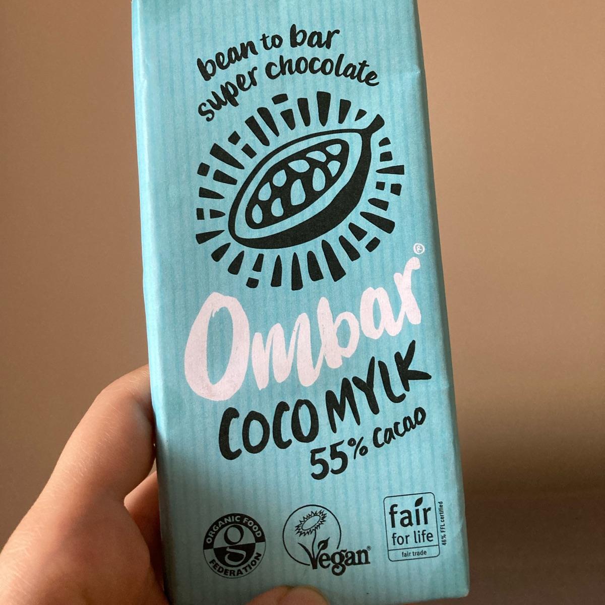 Barrinha de chocolate 55% com leite de coco! Achei uma delícia! Ela é bem cremosa, o chocolate derrete na boca. Achei interessante o fato de que os ingredientes são orgânicos e o açúcar usado é o de coco!