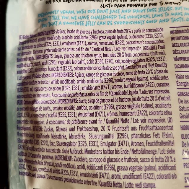 Es un mix de regaliz y lenguas multicolor. Literal están bañadas en azúcar con toque ácido. Demasiado para mí, quitando eso el sabor es bueno.