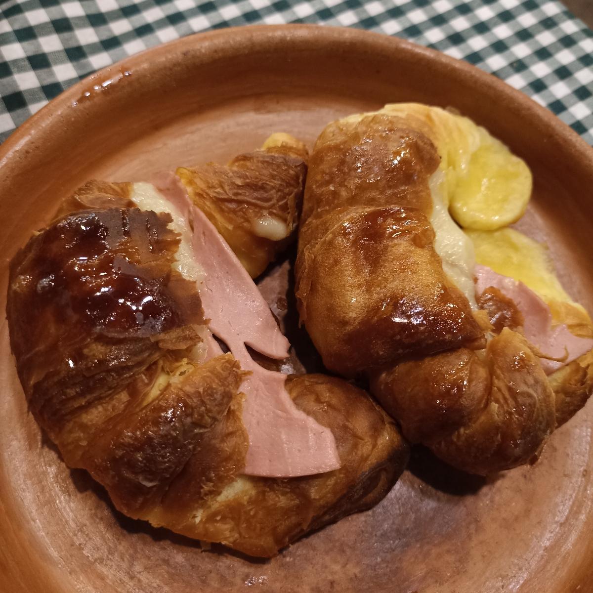 Horribles 🤢 Por dos motivos: en primer lugar porque usan el jamón de felices las vacas que me parece un espanto y además aclara en el paquete que no es para calentar, se come frío. Por las fotos que vi creo que antes usaban el de Veggieland, que pena 💔 Y en segundo lugar porque las medialunas estaban re gomosas, sospecho que las calentaron en el microondas 😬