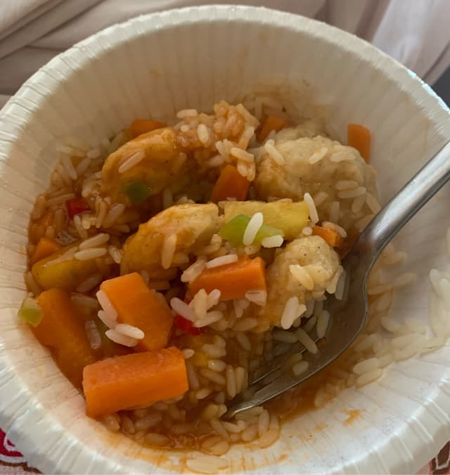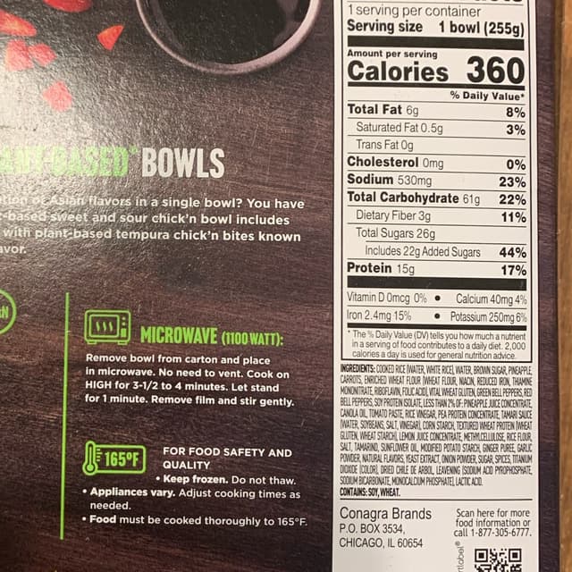 Really tasty sweet and sour “chicken”. Looks small but it left me quite full. Contains lots of sugar. Got at Target for around $4.50.