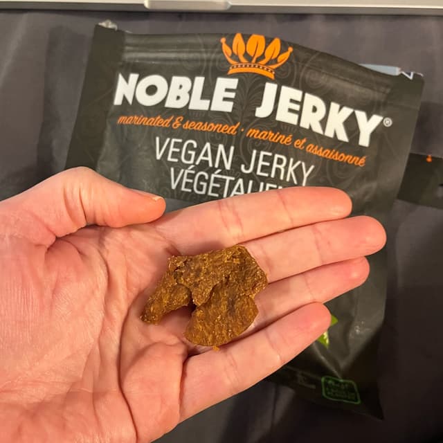 These teriyaki jerky pieces were delicious! It’s a softer jerky than I’m used to, which is fine by me. It has strong, sweet, teriyaki flavor. Perfect! I ate the entire bag because I lack discipline 😁