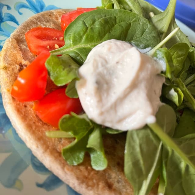 Made with almond based yogurt, cucumbers, garlic, dill, and some other ingredients. The dill really stands out. I didn’t know what Tzaziki was for, but I grabbed this when I saw that it was on sale for a great deal, and I know that kite Hill is a high-quality brand. I’ve never been disappointed with anything I’ve had from them. I enjoyed this in a Keema paratha sandwich.