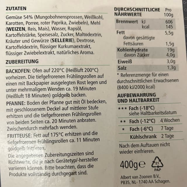For a „prepped“ Spring roll, it was really good. I made it in the oven. It was crunchy and tasty. Really nice for a ready meal. But not healthy !