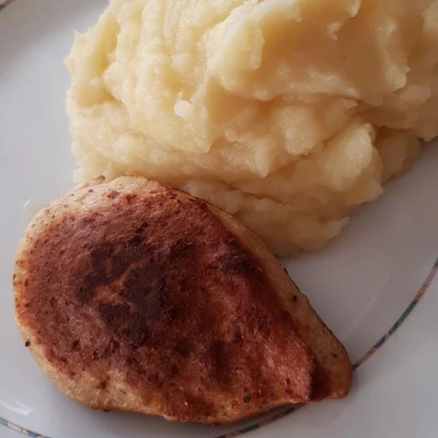 Cotto in padella con dell'olio, ha fatto una bella crosticina fuori. Dentro, come consistenza ricorda il seitan, ma non proprio perché ha anche un che di fibroso. Davvero piacevole, come anche il sapore!