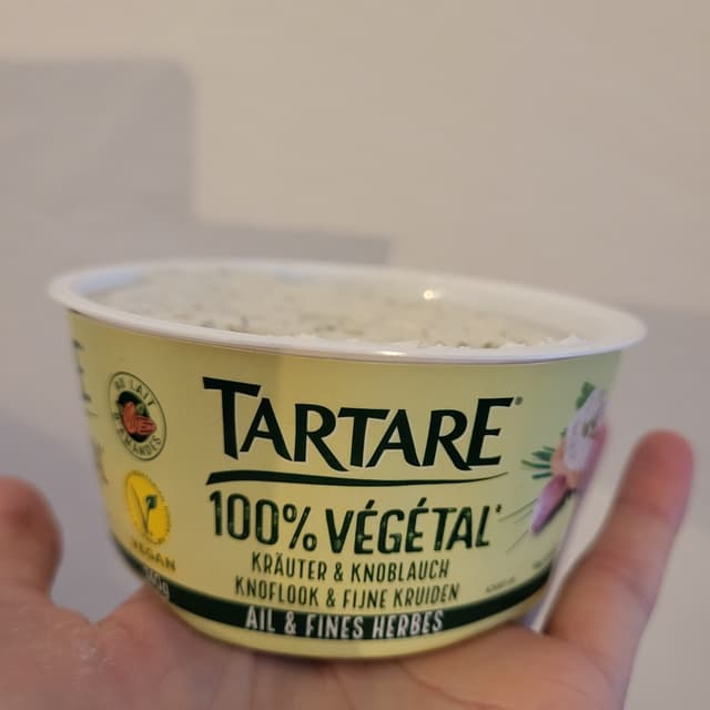 100% vegetal au lait d'amande ail et fines herbes is a plant-based cheese spread made from almond milk. It has a creamy texture and a bold garlic and herb flavor that is sure to satisfy your cravings for a rich and savory treat. This product is not only vegan but also free from added preservatives or artificial ingredients. It can be used as a dip, spread on crackers or bread, or simply enjoyed on its own. Some customers have reported that it has a delicious taste and is a healthier and more sustainable choice.