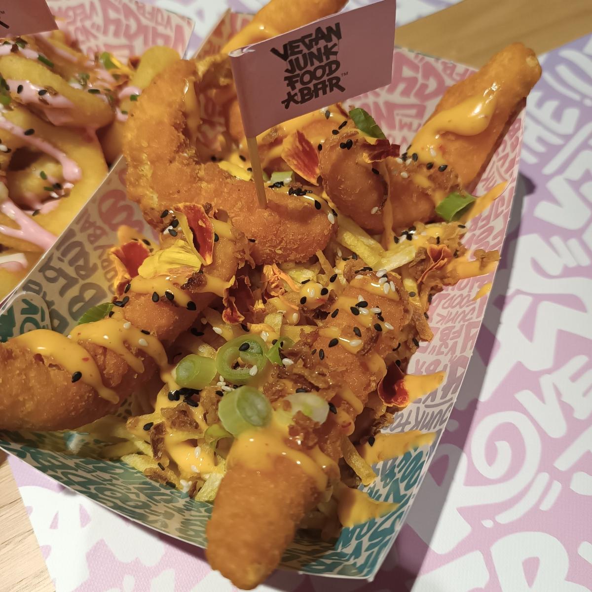"Gambas" rebozadas con salsas. Bastante buenas pero muy poca cantidad para el precio... #elhogar