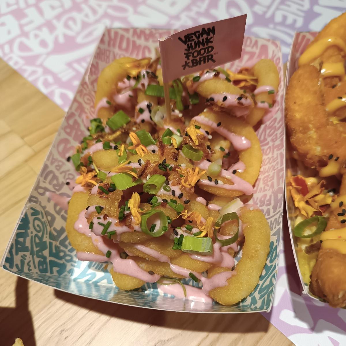 Aros de cebolla con salsas. Bastante picante. Buen sabor, poca cantidad #elhogar