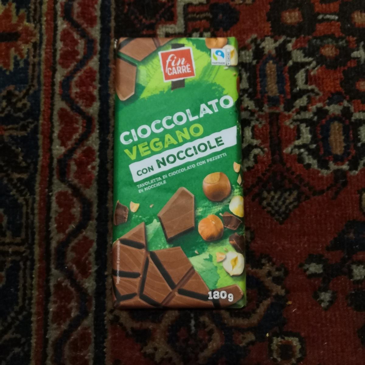 Cioccolato al latte vegano con nocciole della fin carré. Veramente molto buono, la tavoletta è da 200gr e sembra tipo toblerone, come al solito è un po troppo dolce ma nella norma