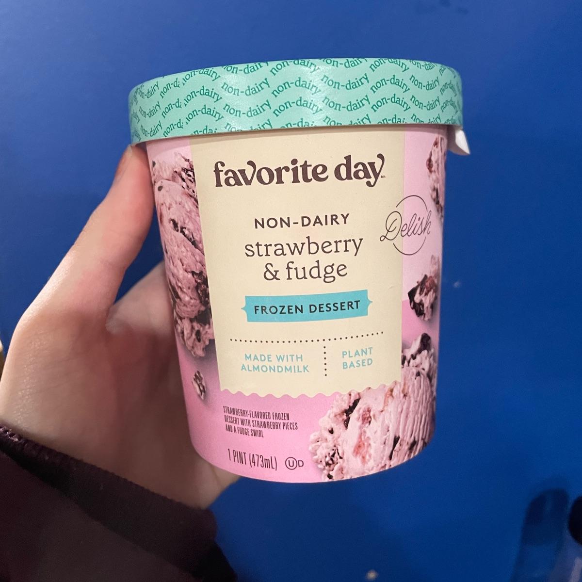 This is delicious, pretty creamy for an almond milk based ice cream. The strawberry is sweet and the fudge is rich.