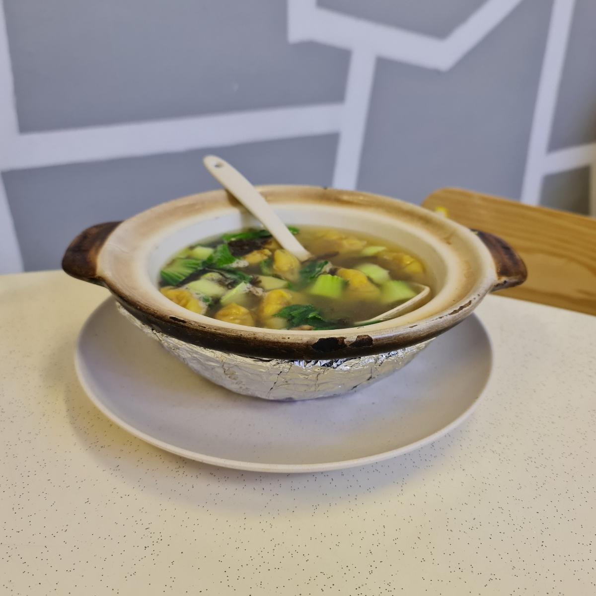 Housed in #claypot stuffed with well-seasoned #omnimeat with a known alkaline skin presence (nothing too distracting) in clean, piping hot #broth. Pricey at $9; to be expected though for #plantbasedmeat minus the mushy