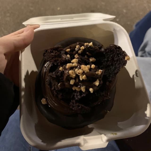 BUE-NÍ-SI-MO! Fuimos al chök mi hermana, una amiga y yo. Yo iba en busca de un krönut, y habían muchas opciones veganas, pero a mi hermana y a mí nos cautivó el mismo sabor, de chocolate, y las dos nos pedimos el mismo.