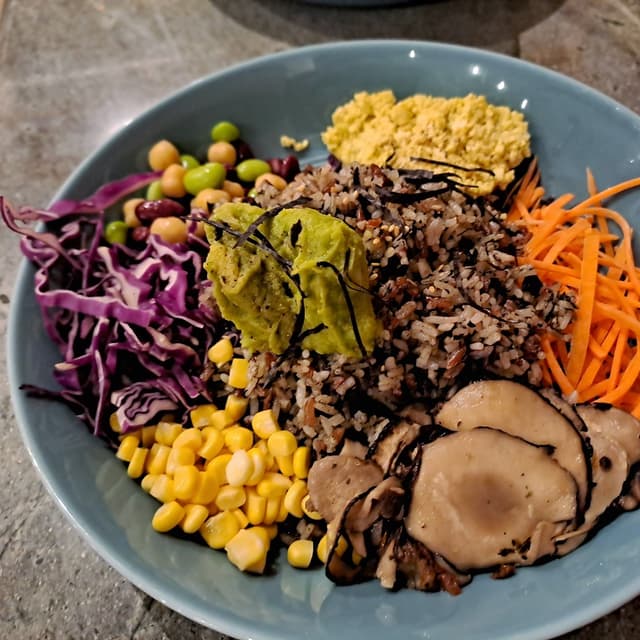 Super wholesome! Olive brown rice was flavourful, with lots of olive bits. The creamy guac was surprisingly tart and refreshing. Tofu scramble was interestingly egg-like. Portion was large, enough for 2.