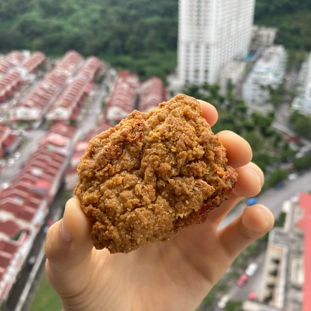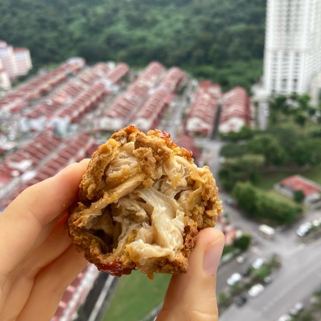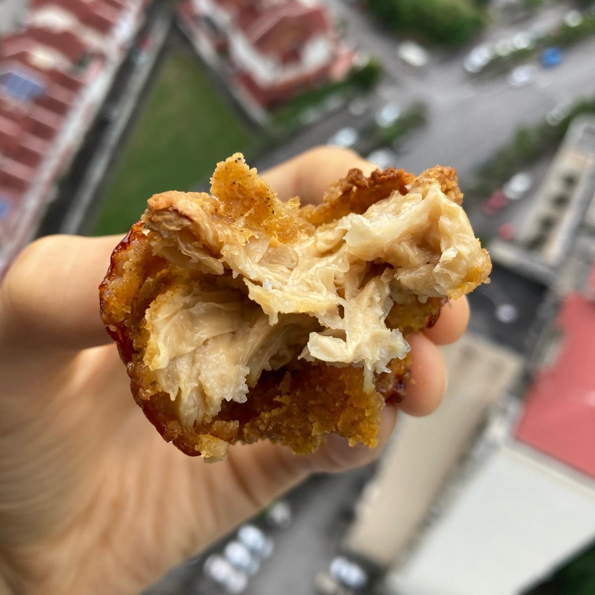 Yesterday I went to Foodicious - a huge food and beverage expo. Went for the free samples, came back with, among others, this. It’s one of the best vegan fried chicken I’ve had! The breading is perfectly spiced and gets super crunchy, even in the air-fryer. The inside is made from tofu skin and some more stuff, but damn, it’s convincingly chicken 🍗 Best part: I got a whole 400g package for 7.5RM, about 1.50€. #veganchicken #hoshay #reviewwithaview