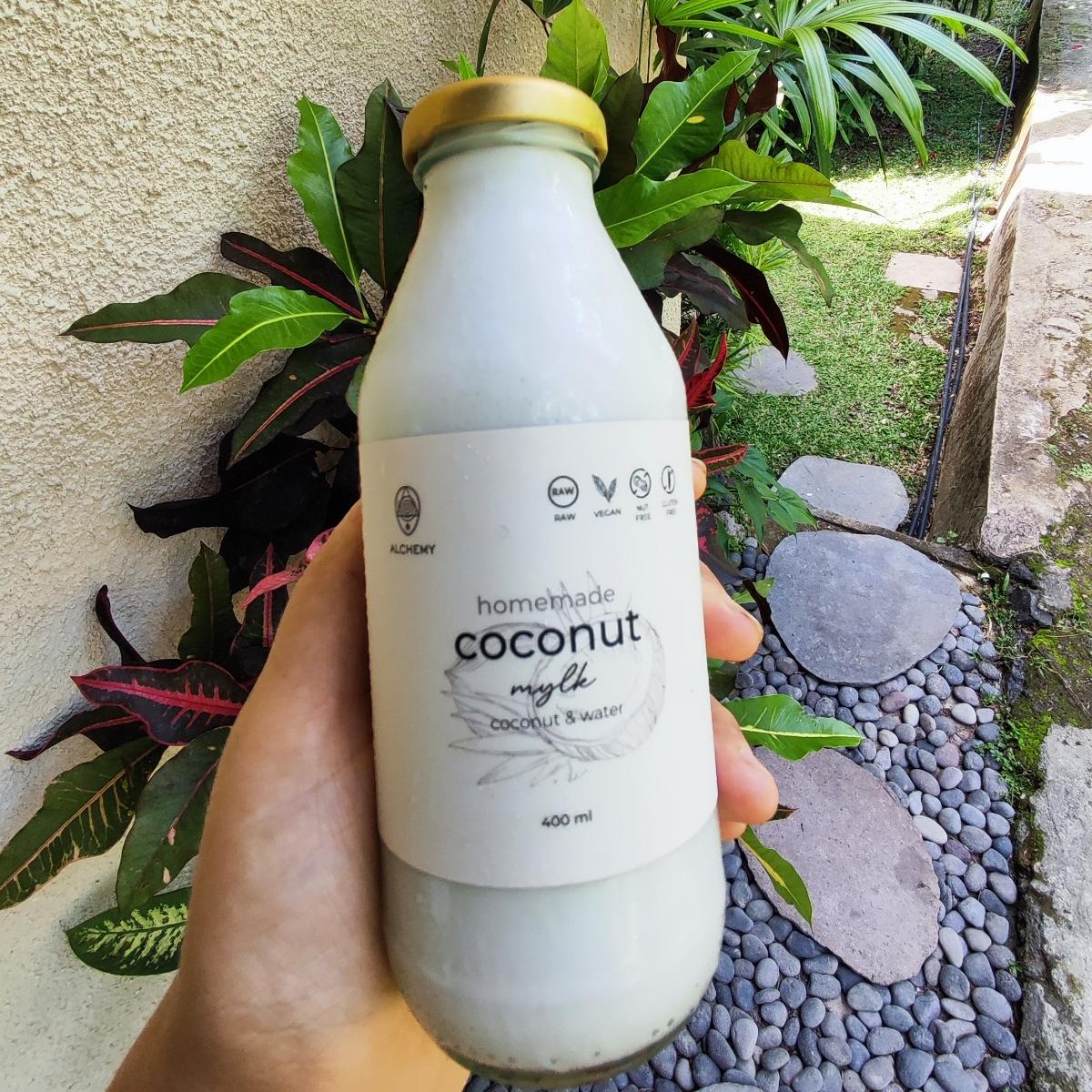 So I simply like to make my own from just the nut or seed and water. Maybe a date or pinch of vanilla. But right now I don't have my blender and I can't make it so I was happy to find this #coconutmilk freshly made in glass with nothing added. This product goes bad very quickly so you need to use it up fast. But it's so fresh and simple. They have several kinds of fresh mylks to choose from. It's a small bottle but the price is reasonable at 30k.