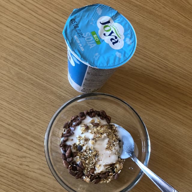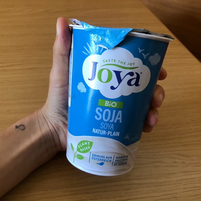 Yogurt di soia biologico senza zuccheri, vorrei far notare che bomba siano i valori nutrizionali (4,7% proteine, 1,6 carbo, 2,6 grassi e 50 kcalx100 g alimento contro i 3,8% proteine, 4% carbo, 3,9% grassi e 66 kcal x 100 g dello yogurt normale - dati Parmalat). Raga (anche onnivori) MANGIATE LO YOGURT DI SOIA 🥛. Questo è anche senza zuccheri aggiunti (quindi super top), io lo mangio insieme al muesli. 🐮🌱