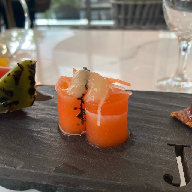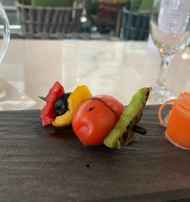 Few weeks ago I treated myself to a birthday dinner at this place. I didn’t love it here honestly. Service was lacking for the price paid, food was average in taste but looked pretty. This starter platter was okay. The skewer had raw tasteless bell pepper and tomatoes 🍅 The vegan salmon was okay, but rather without taste. The sphere on the cracker was nice! #finedining #singapore
