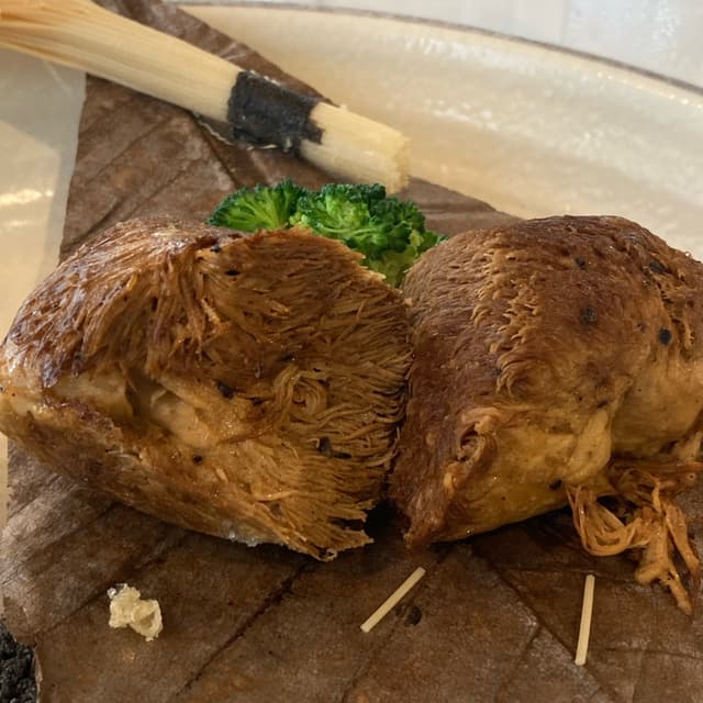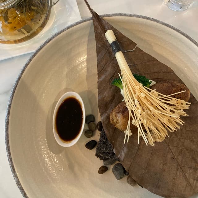 Hmm, I suppose the only possible non-vegan thing in this could be the #hericiummushroom because a lot of the ones you get from suppliers in Singapore are suspended in egg white or pre-battered for some reason but otherwise… 🤷♀️