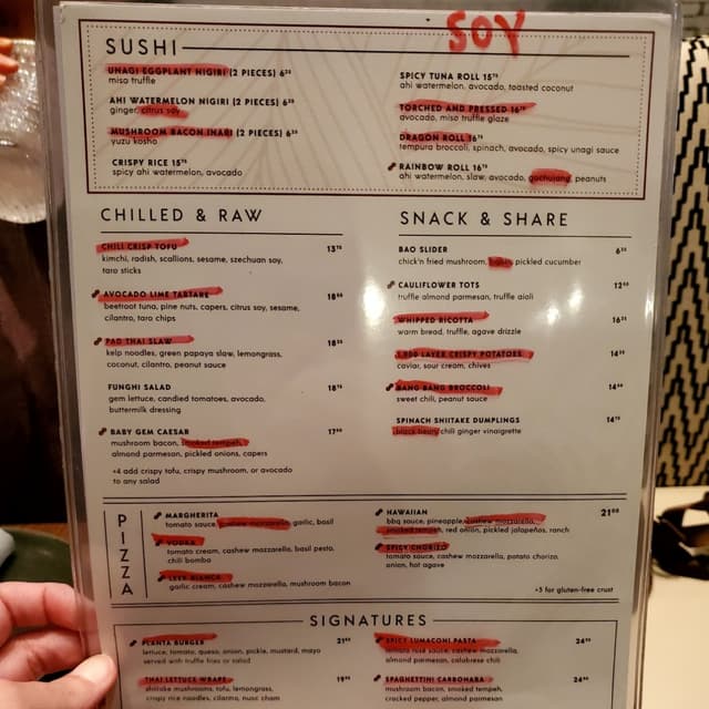 I forgot to mention in some of my other reviews that this place was super #allergyfriendly and had all the items with soy highlighted separately for those with soy allergies, like my friend. Vegan places are usually more aware of allergies, but we'd never been to one that had a highlighted menu ready to go. That made my friend's ordering a lot easier, but it also meant we couldn't share the bang bang broccoli like I had dreamed 😅 I was still very happy with my order (minus the lettuce one...) The dessert menu wasn't highlighted but our server advised of the soy-free options without us asking. Very lovely!