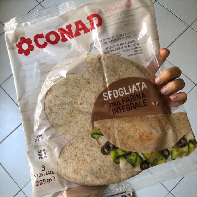 Here's a description of the sfogliata con farina integrale, a delicious pastry made with whole wheat flour. The dough is easy to roll and produces a soft, flaky texture that will leave your taste buds craving more. Despite the use of high-quality ingredients, the packaging is made from plastic, which may not appeal to eco-conscious consumers. However, the taste of this sfogliata is simply too good to pass up. Whether you're enjoying it on its own or pairing it with melted cheese, rocket, and hummus for a complete meal, you'll find that this whole wheat sfogliata is a must-try.