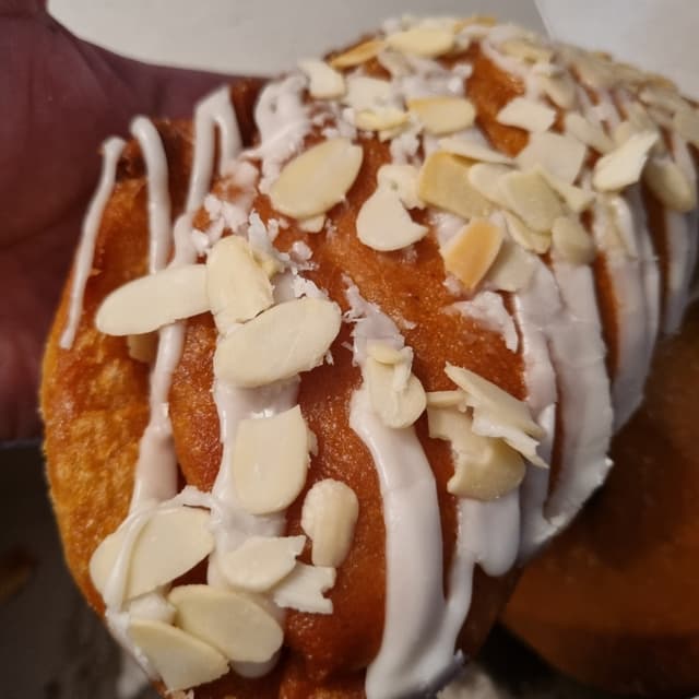 The toasted almonds & vanilla drizzle tops off an incredibly delicious donut.