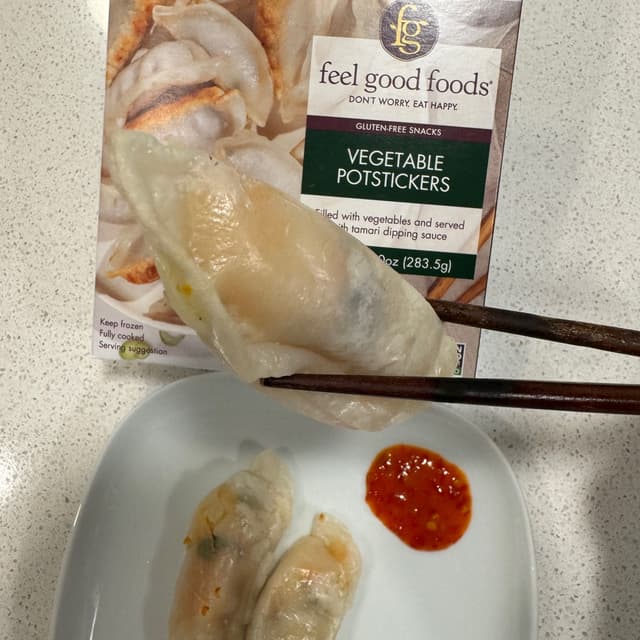 Super tasty veggies potstickers 🥟 by Feel Good Foods! Light, chewy and delicious pockets of yumminess! Comes with a tamari dipping sauce but on the is day I wanted to enjoy this with Sky Valley Sambal Oelek.