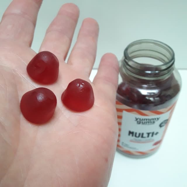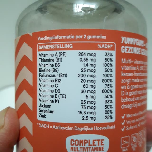 Shape/Conditioning: 180 g single use plastic transparent BIG bottle with 60 gummies. I first wrote that there is no information about the matter used to make the bottle. But I found a small logo stating the bottle is made of recycled PET. Whether partly or for 100%, that's not clear. But at least, that's a better deal than completely new PET. Moreover, the cardboard box that contained three of these bottles actively invited to recycle the cardboard, which is good too (see picture). Security screw on lid, and thatās a good thing because kids might want to finish the bottle all in one day. Marketed and labelled as vegan. It is another inconvenience of oversizing food supplements to sweets: excessive use and waste of packaging.š